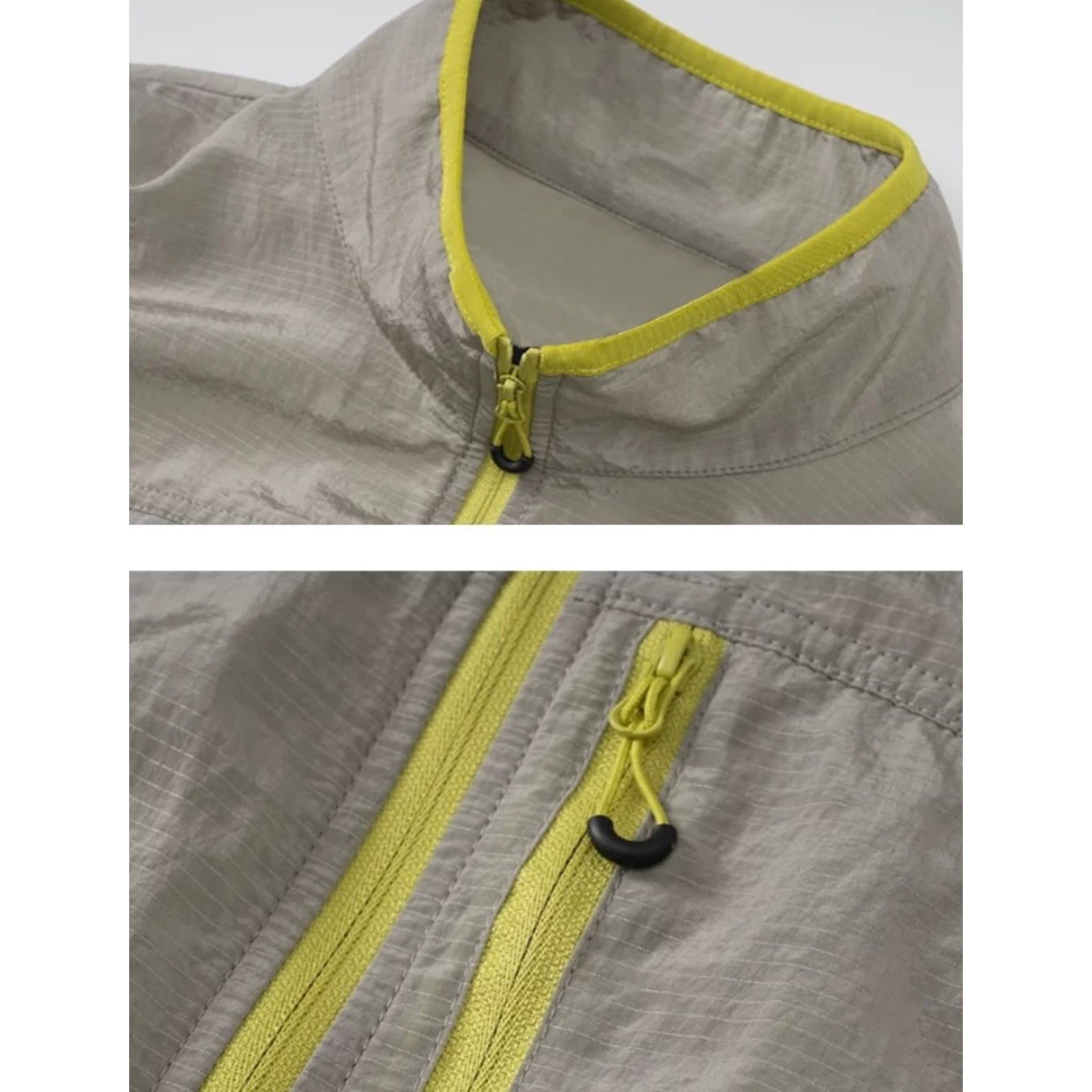 ジップアップで着脱も容易で、様々なコーディネートに合わせやすい汎用性を誇ります。