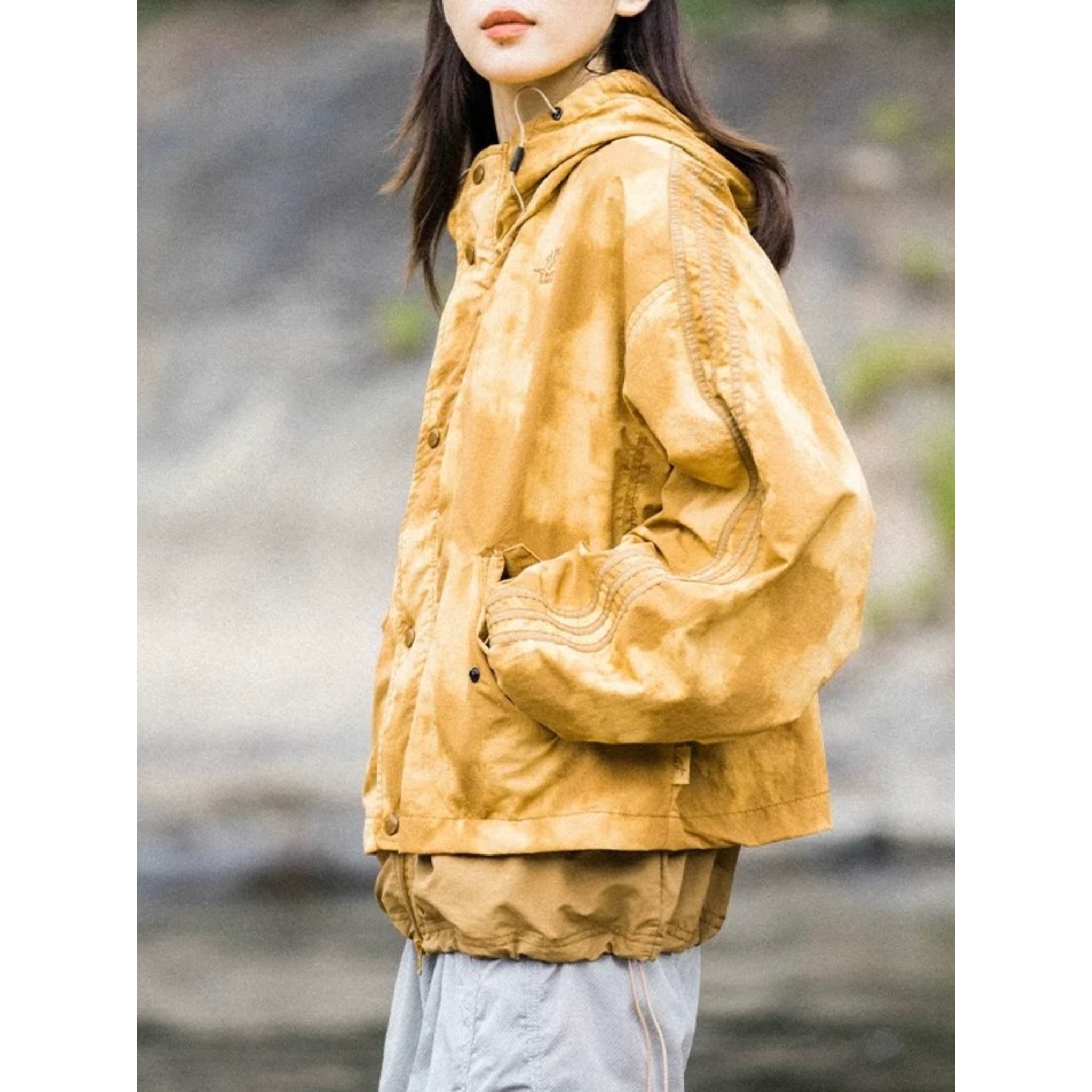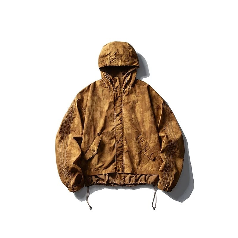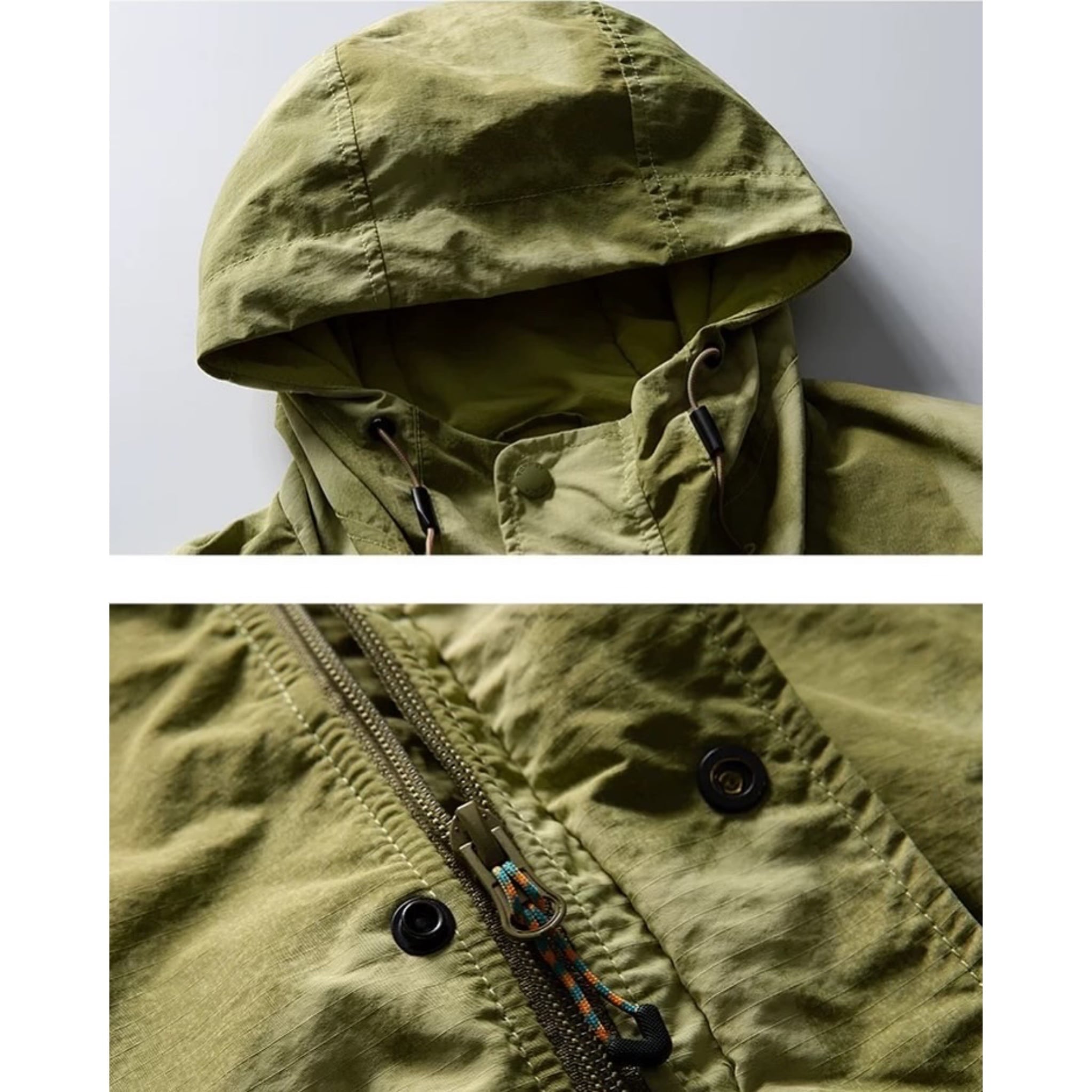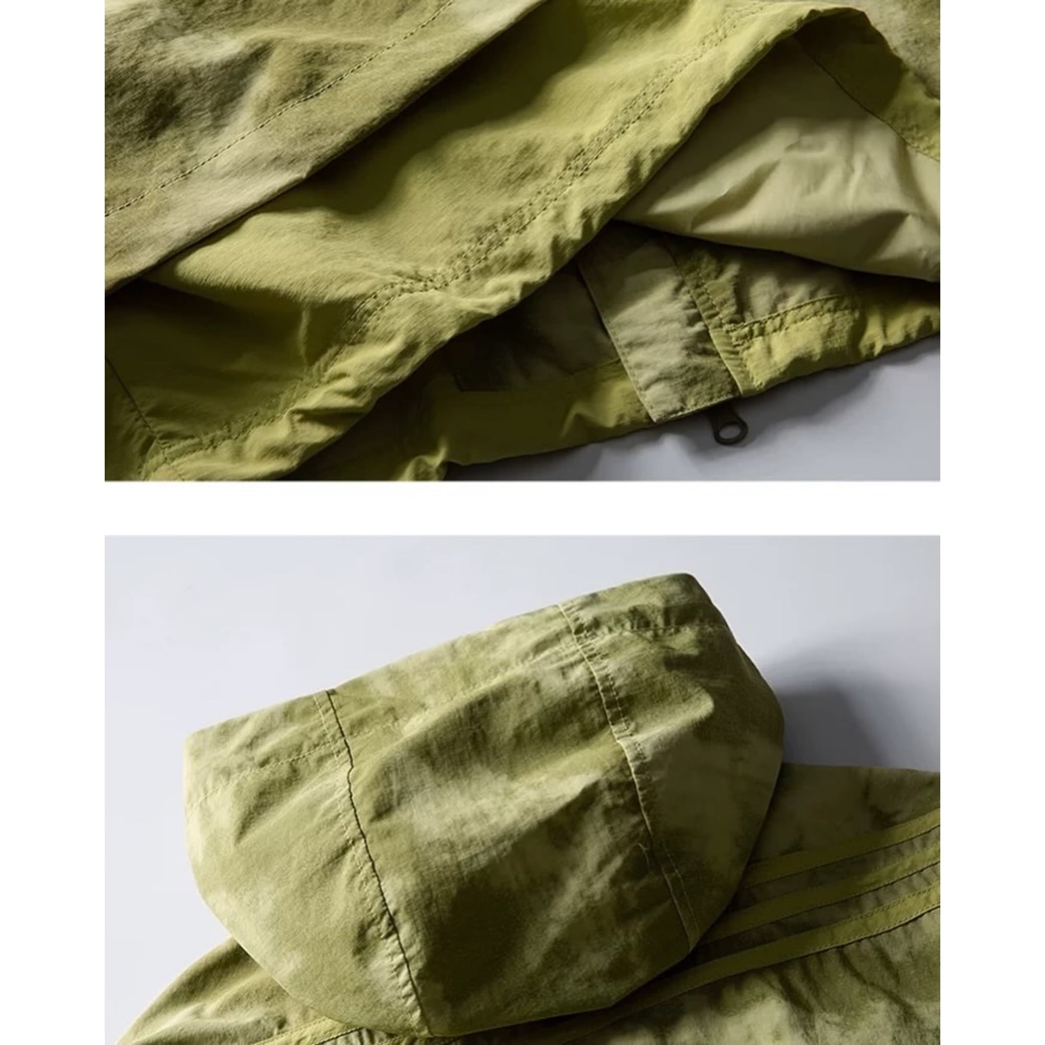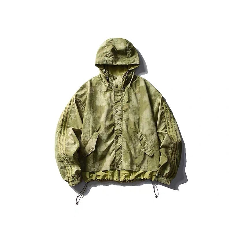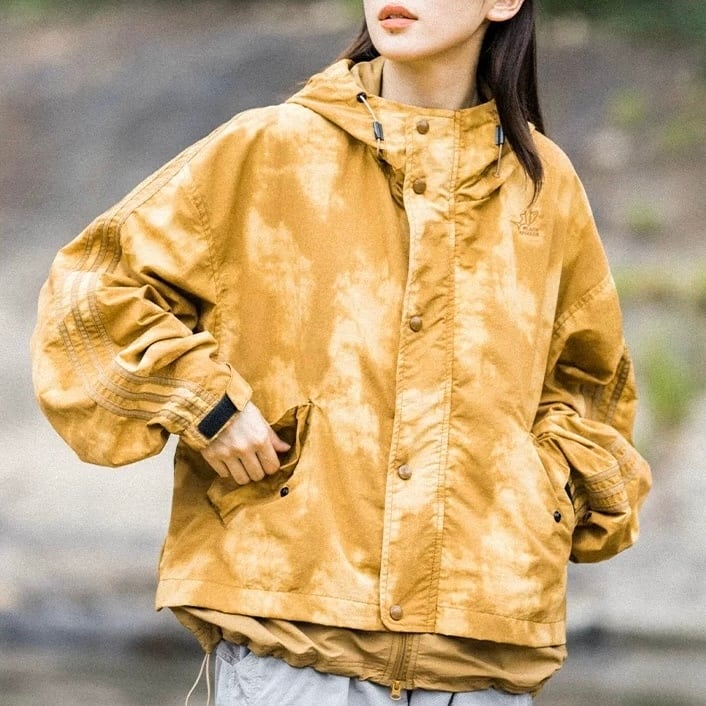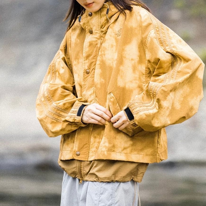 自然の景色に溶け込む、カモフラージュ調プリントが魅力の防水ライトジャケット。