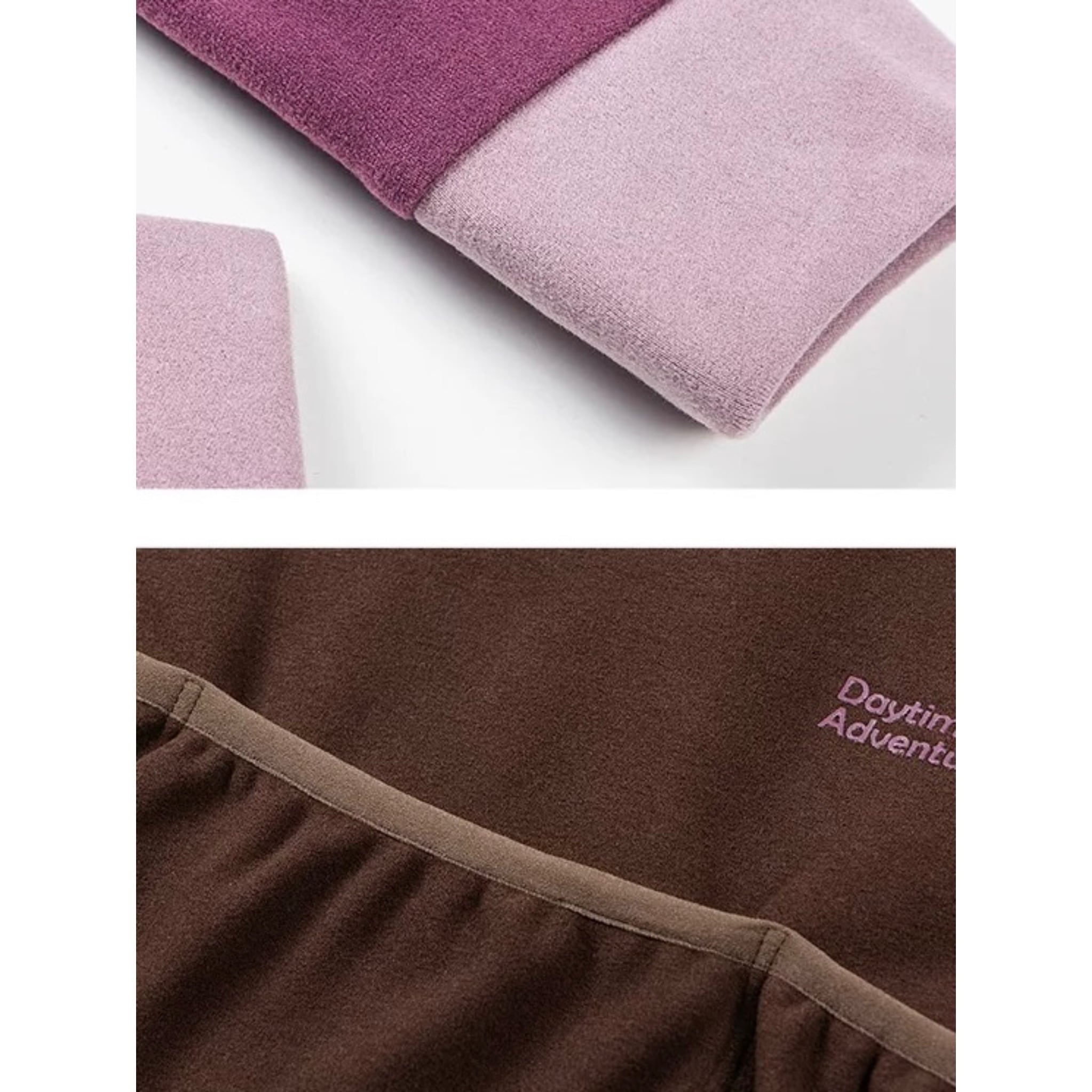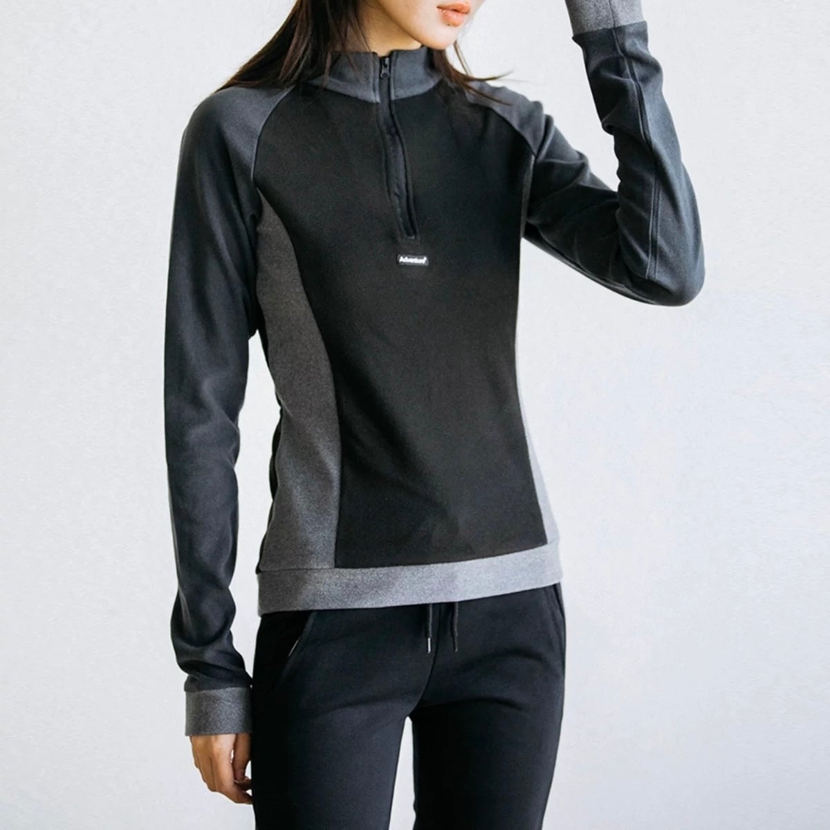 バイカラーの切り替えとハーフジップが特徴的なロングスリーブトップス。