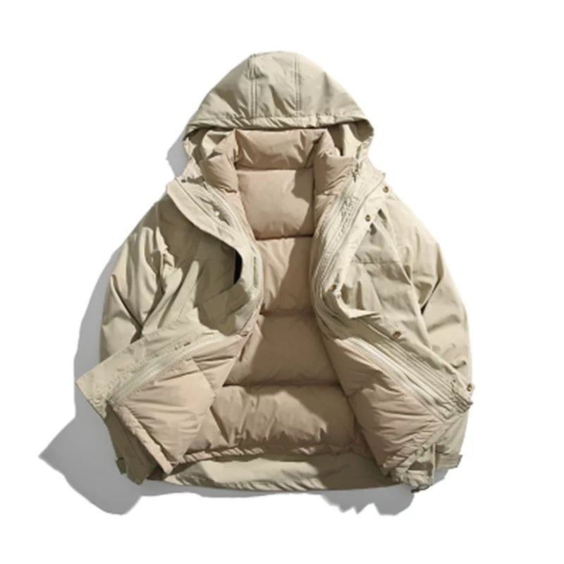 内側に独立したダウンキルティングを備えた二重構造デザイン。