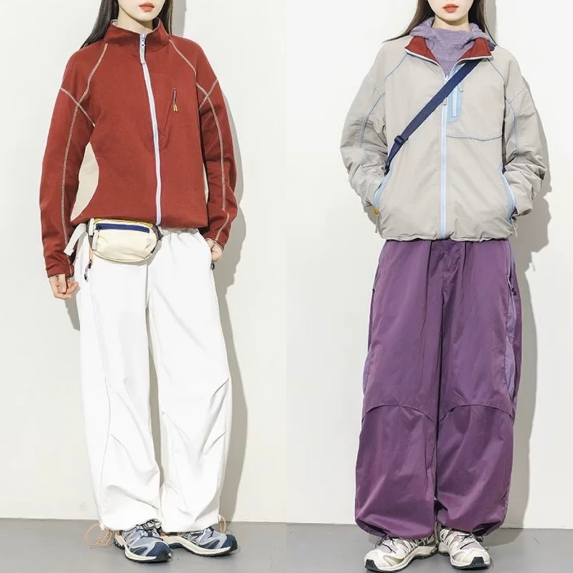 ライトグレー × ワインレッド
