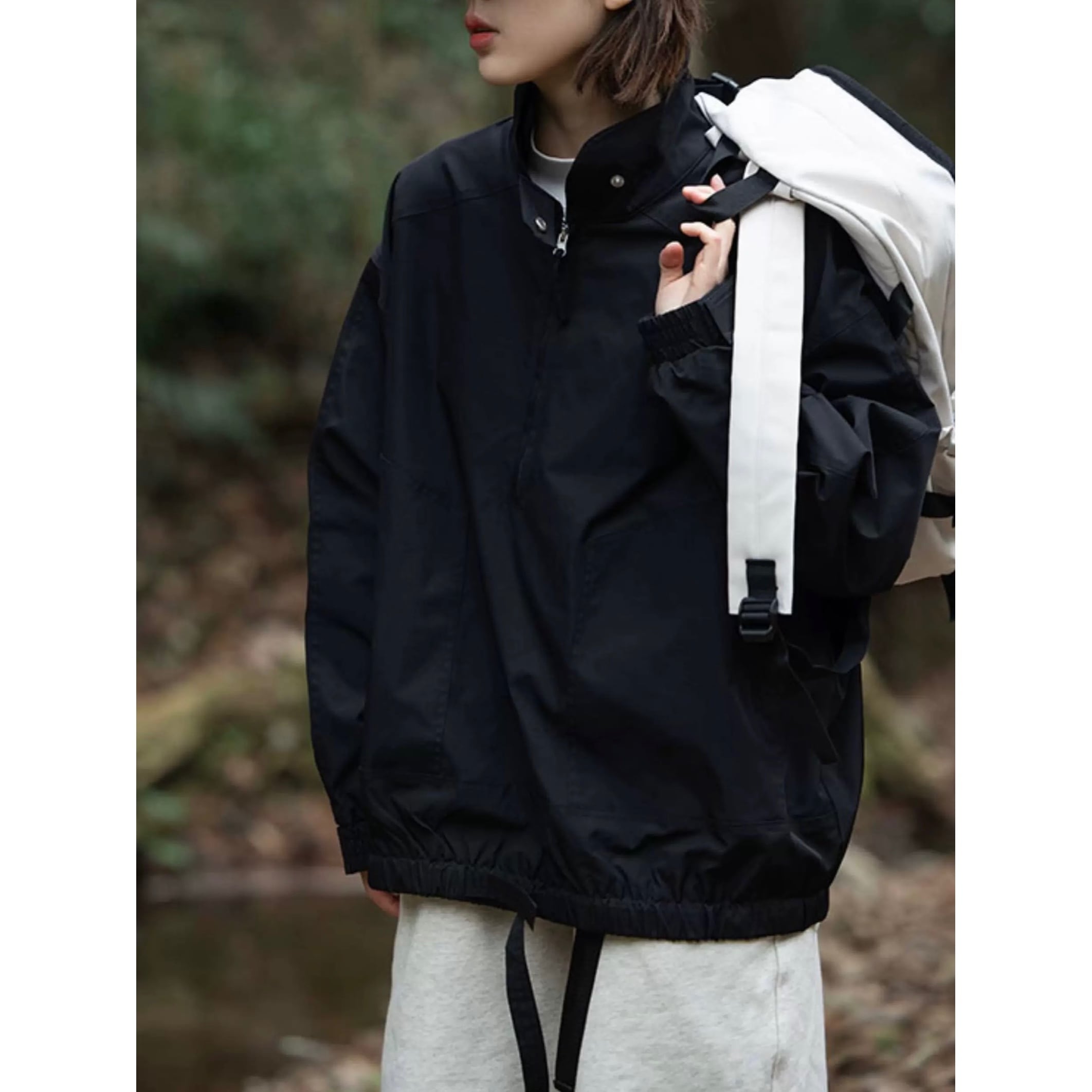 風を防ぎながら、重たく見えないハーフジップ仕様のライトアウター。