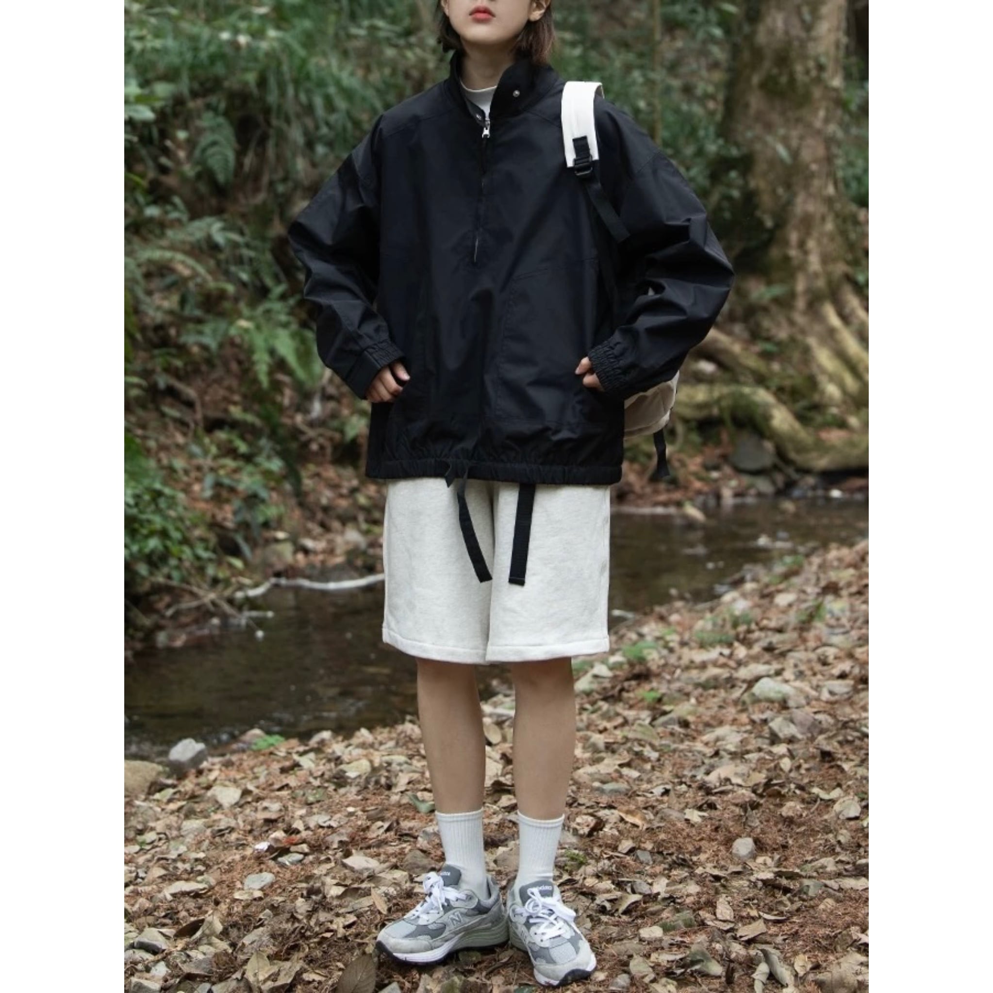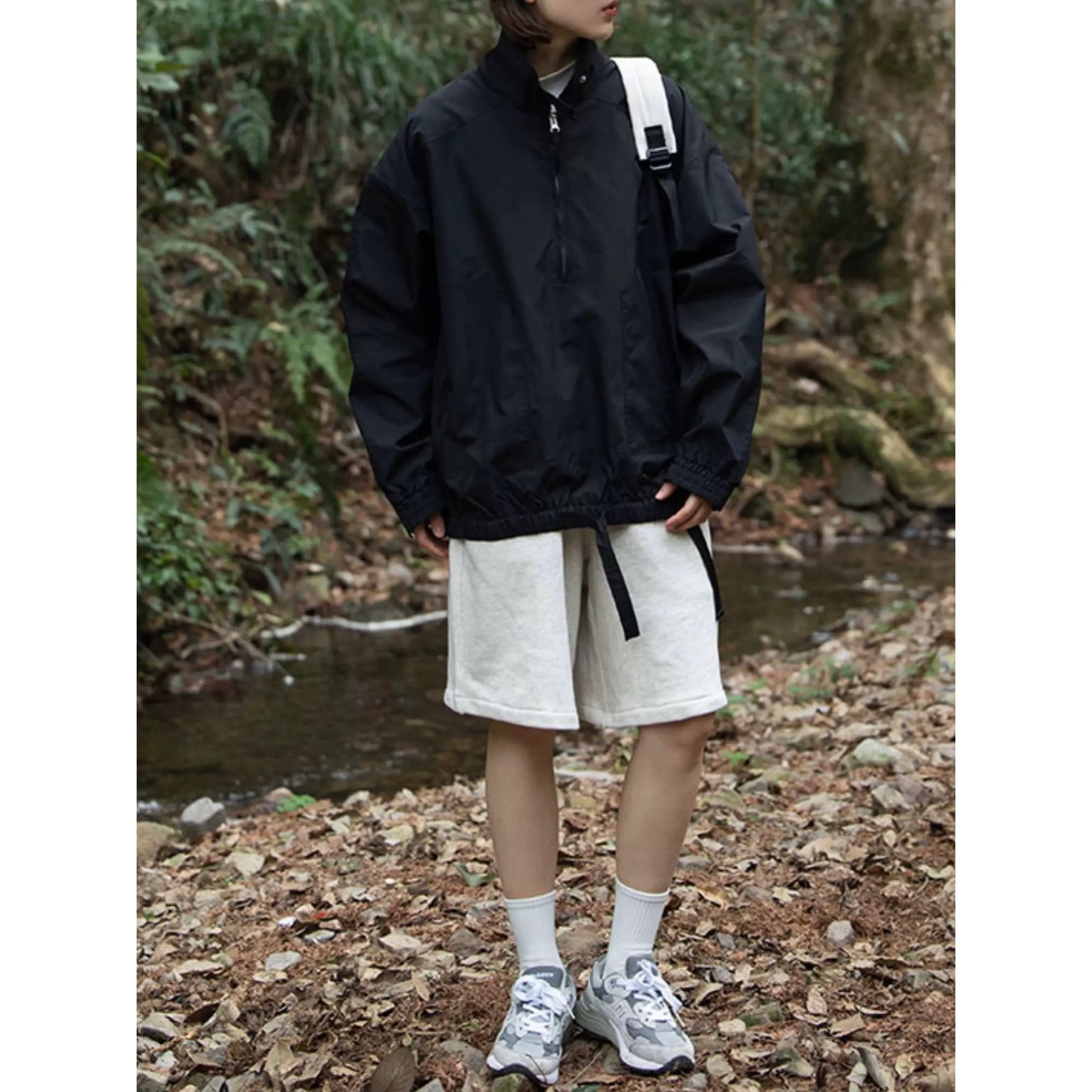 ハーフジップデザインが程よい抜け感をつくり、アウトドアだけでなく、