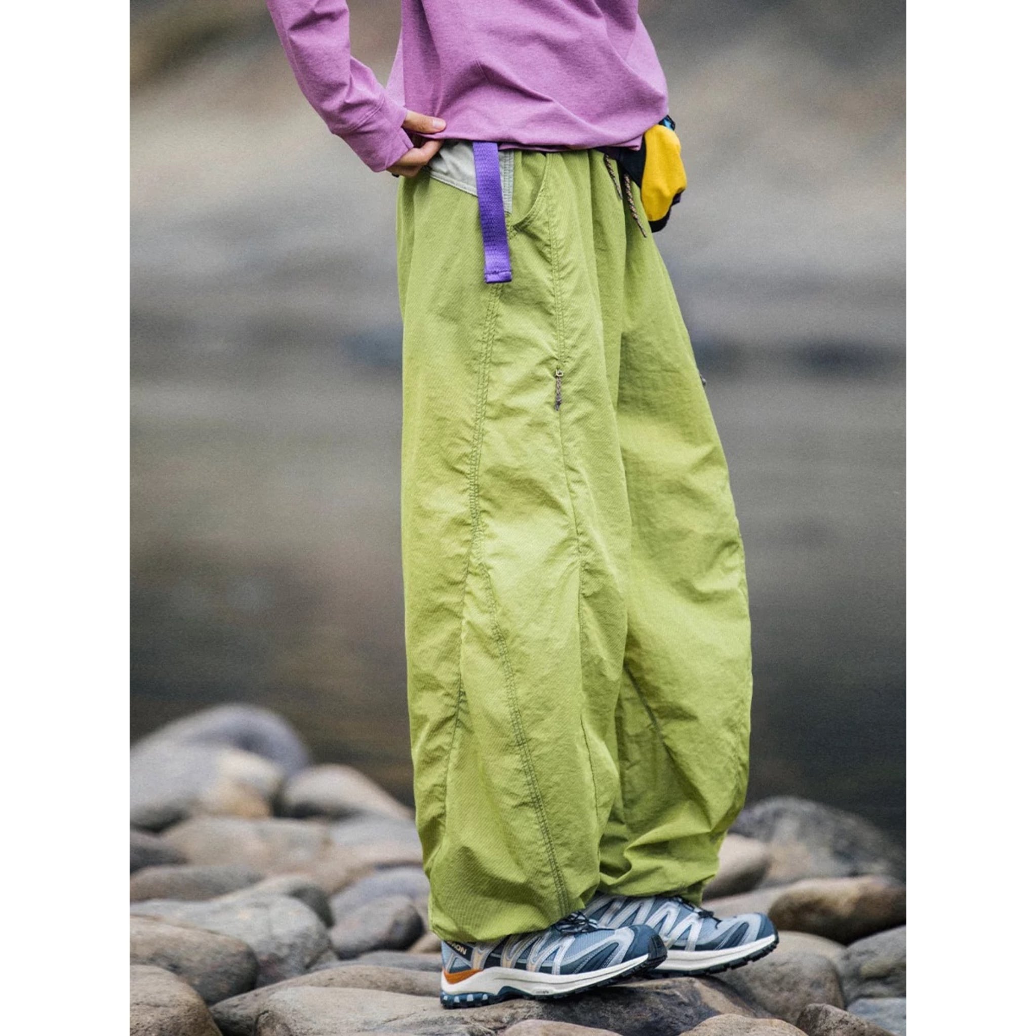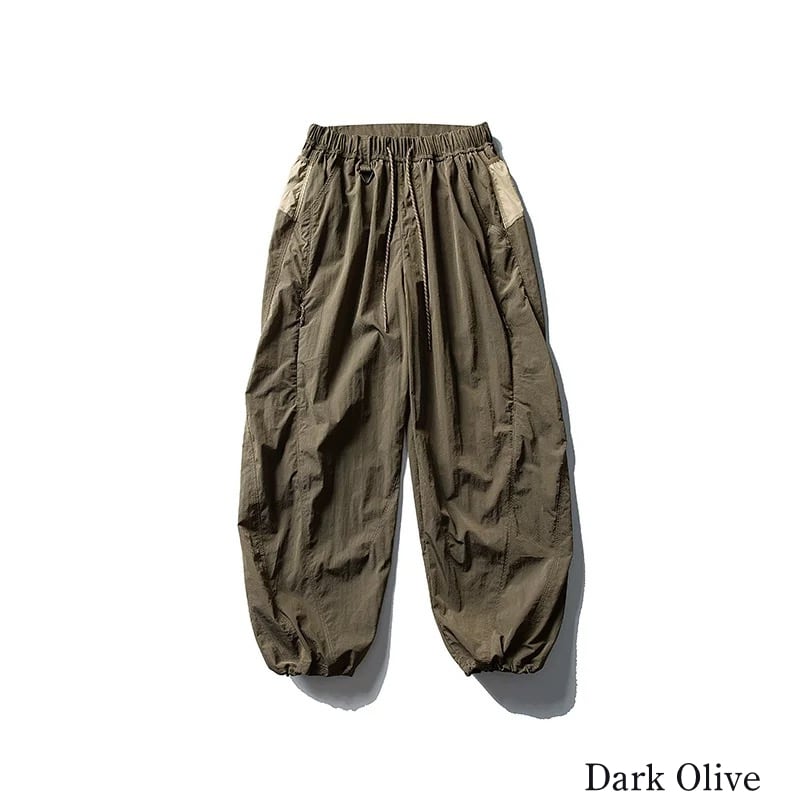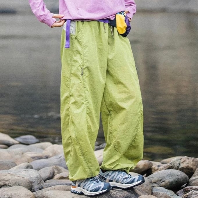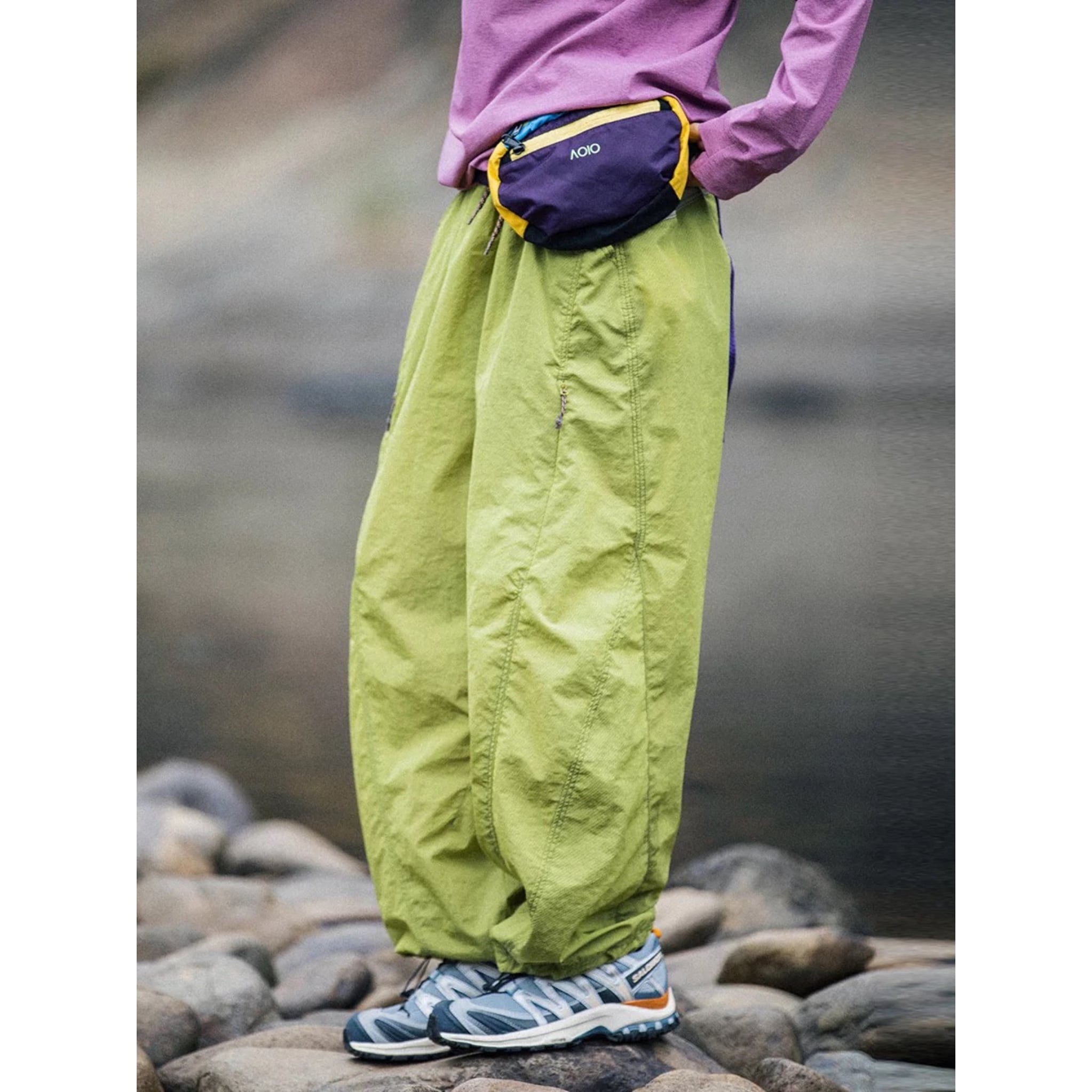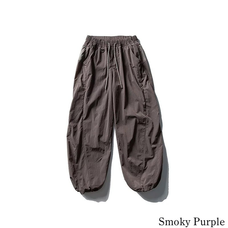 ゆったりとしたワイドシルエットが特徴のアウトドアパンツ。