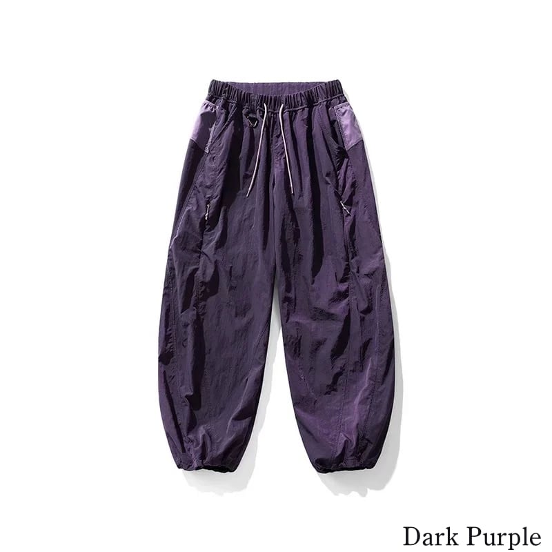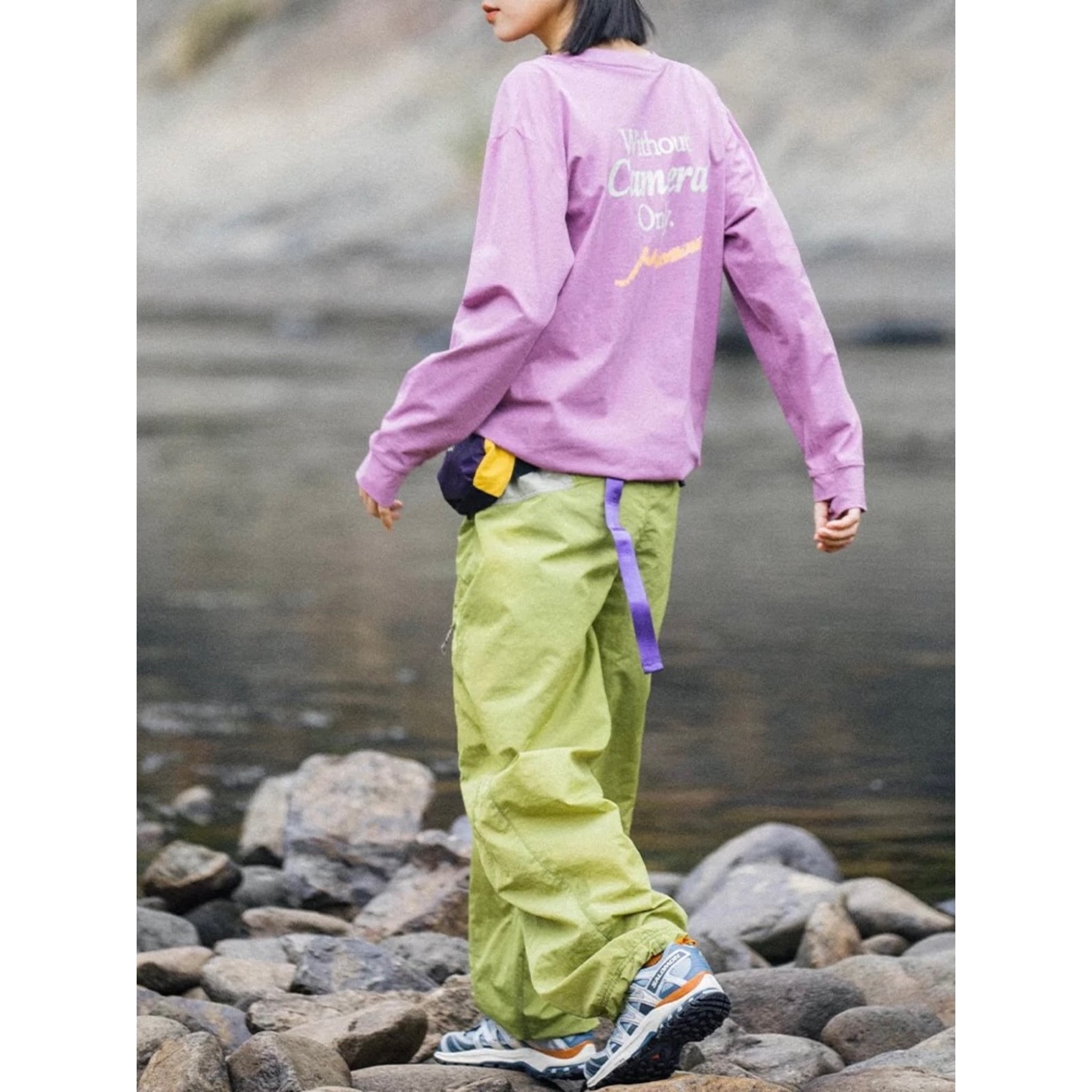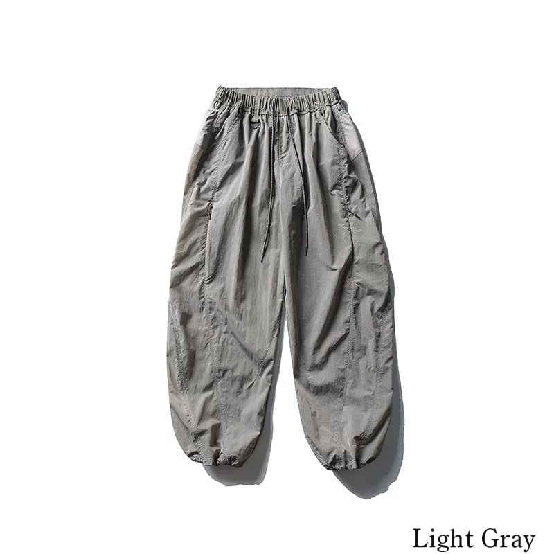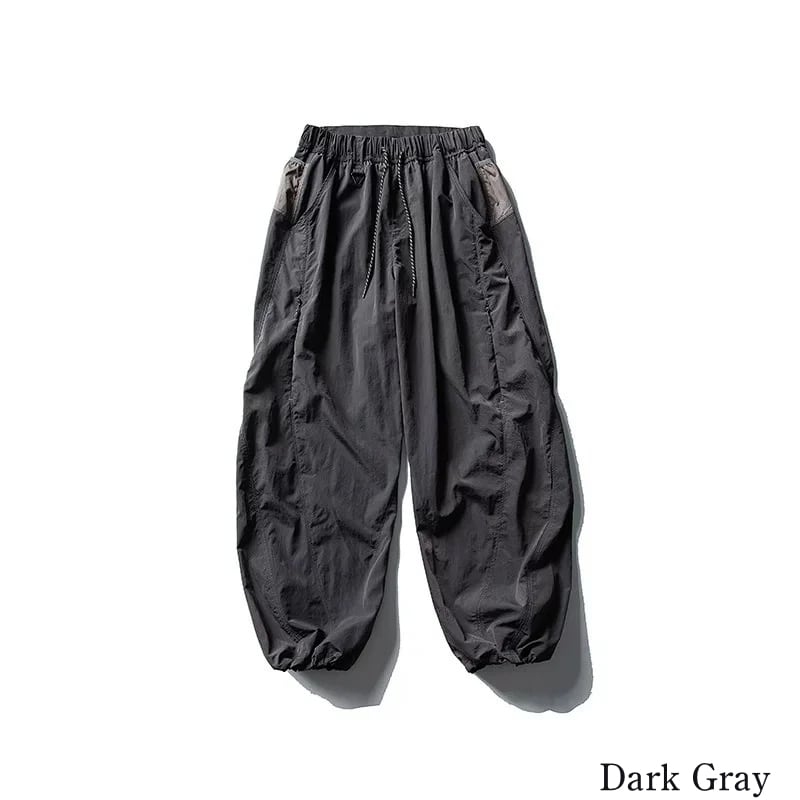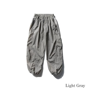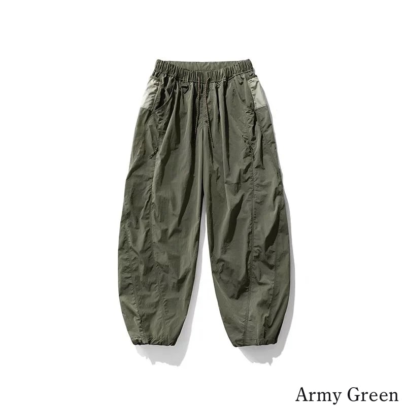 ゆったりとしたワイドシルエットが特徴のアウトドアパンツ。