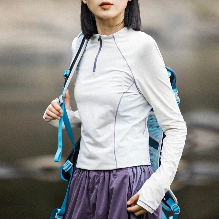 フロントのハーフジップデザインが程よいアクセントになり、スポーティーさと上品さを両立。