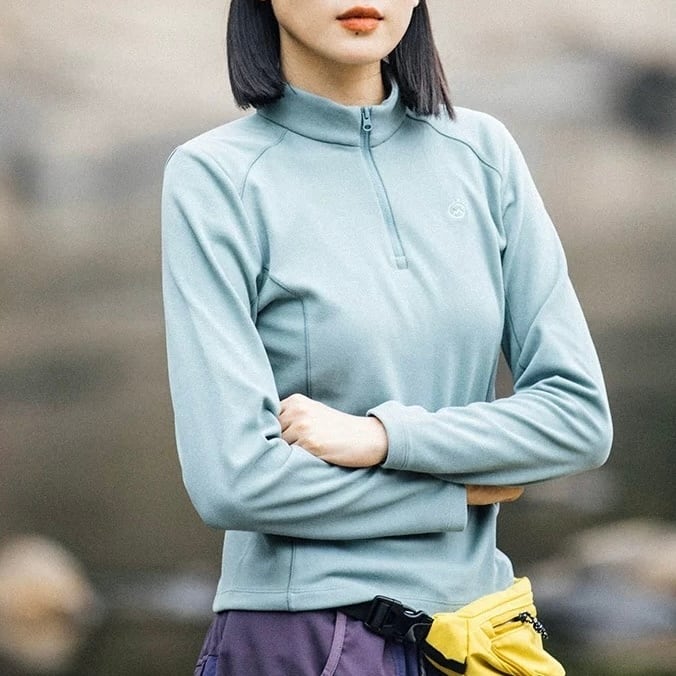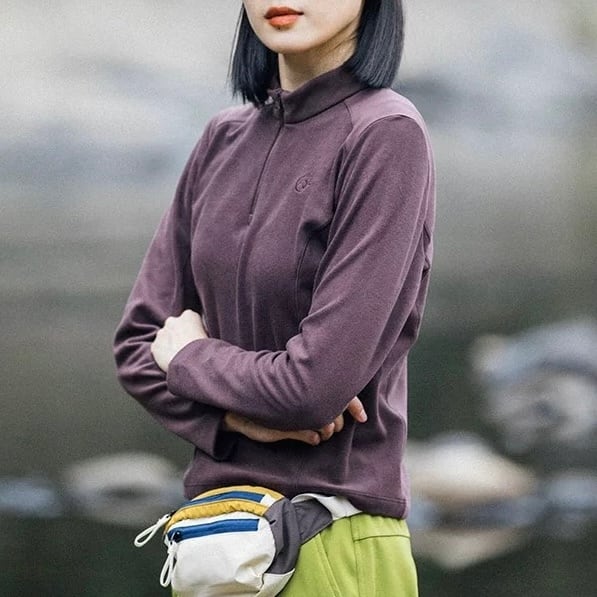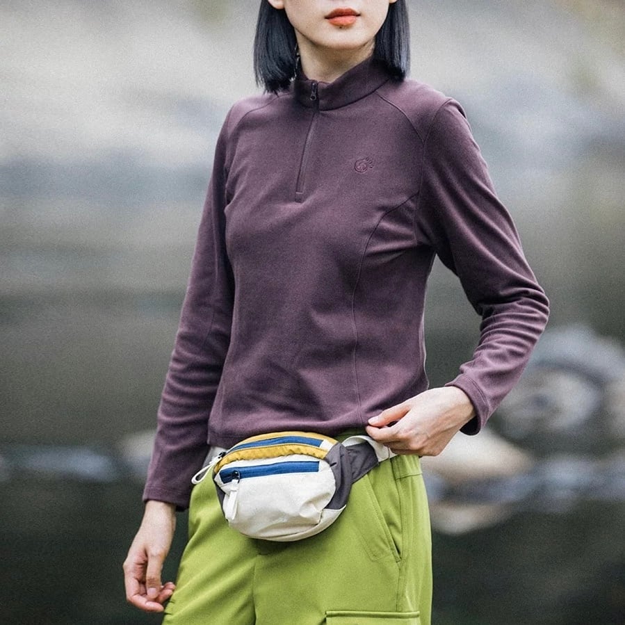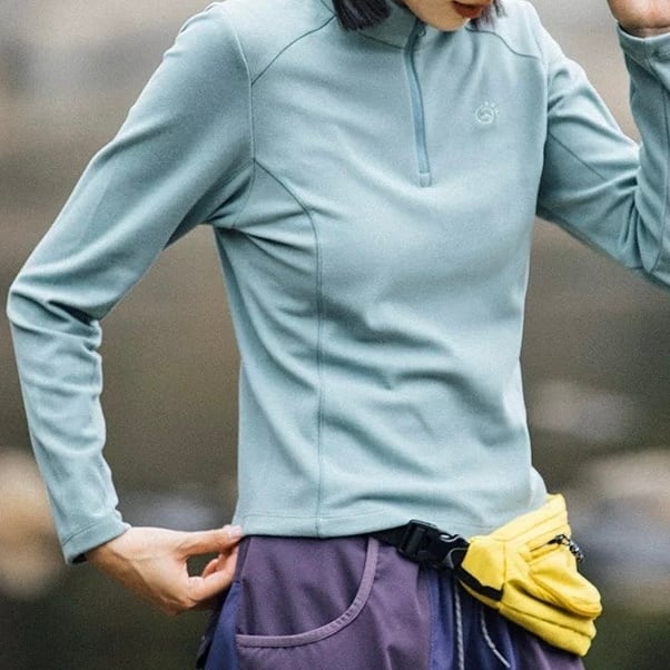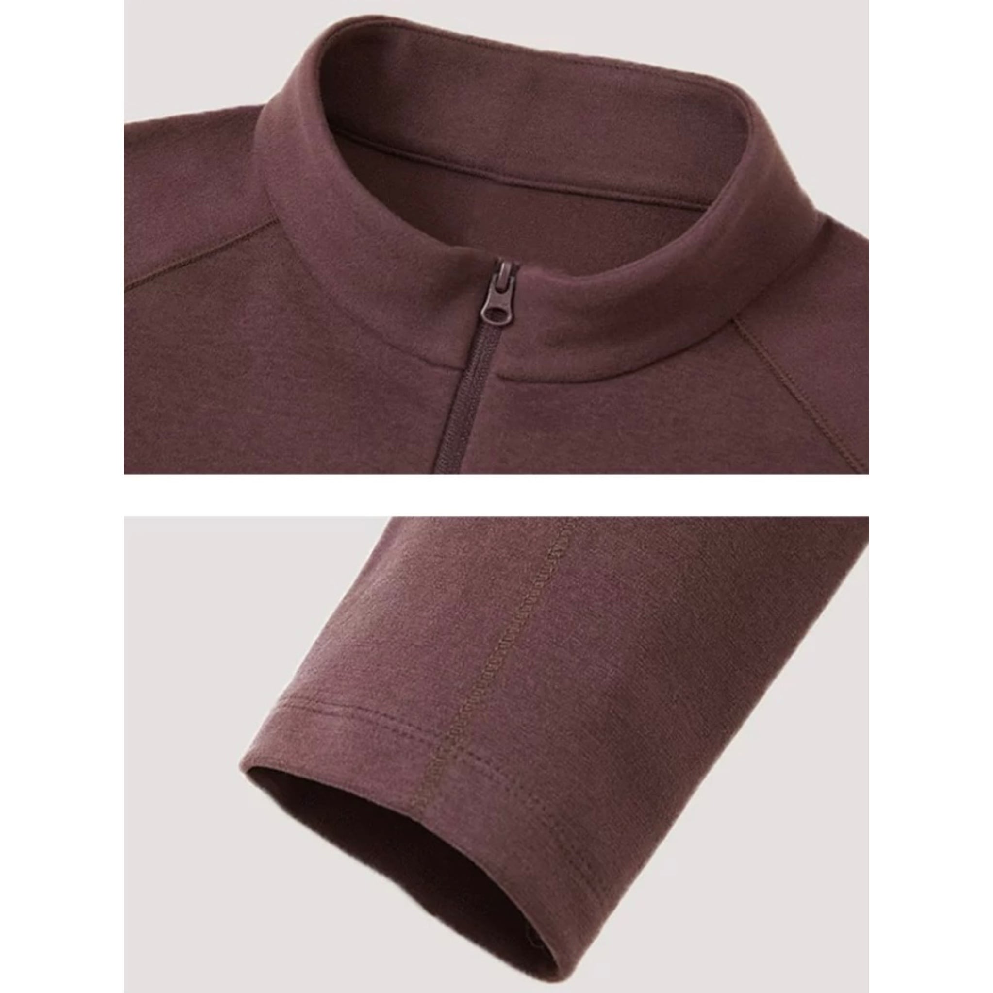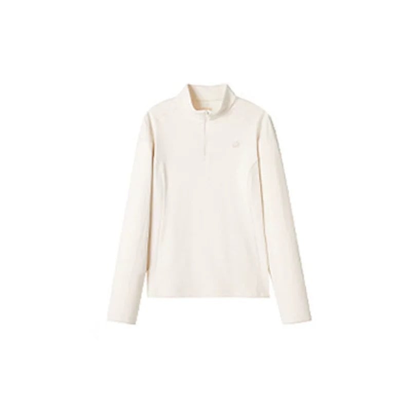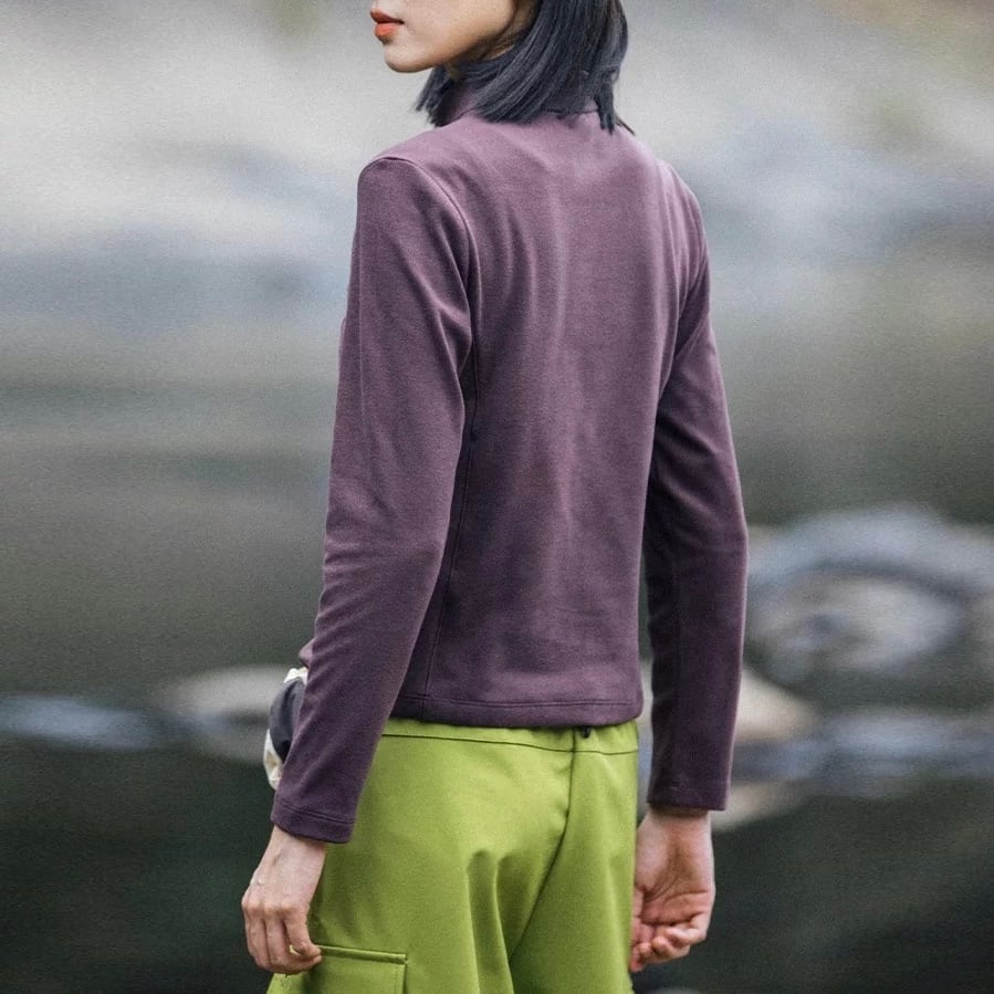シンプルで洗練された印象のハーフジップロングスリーブ。