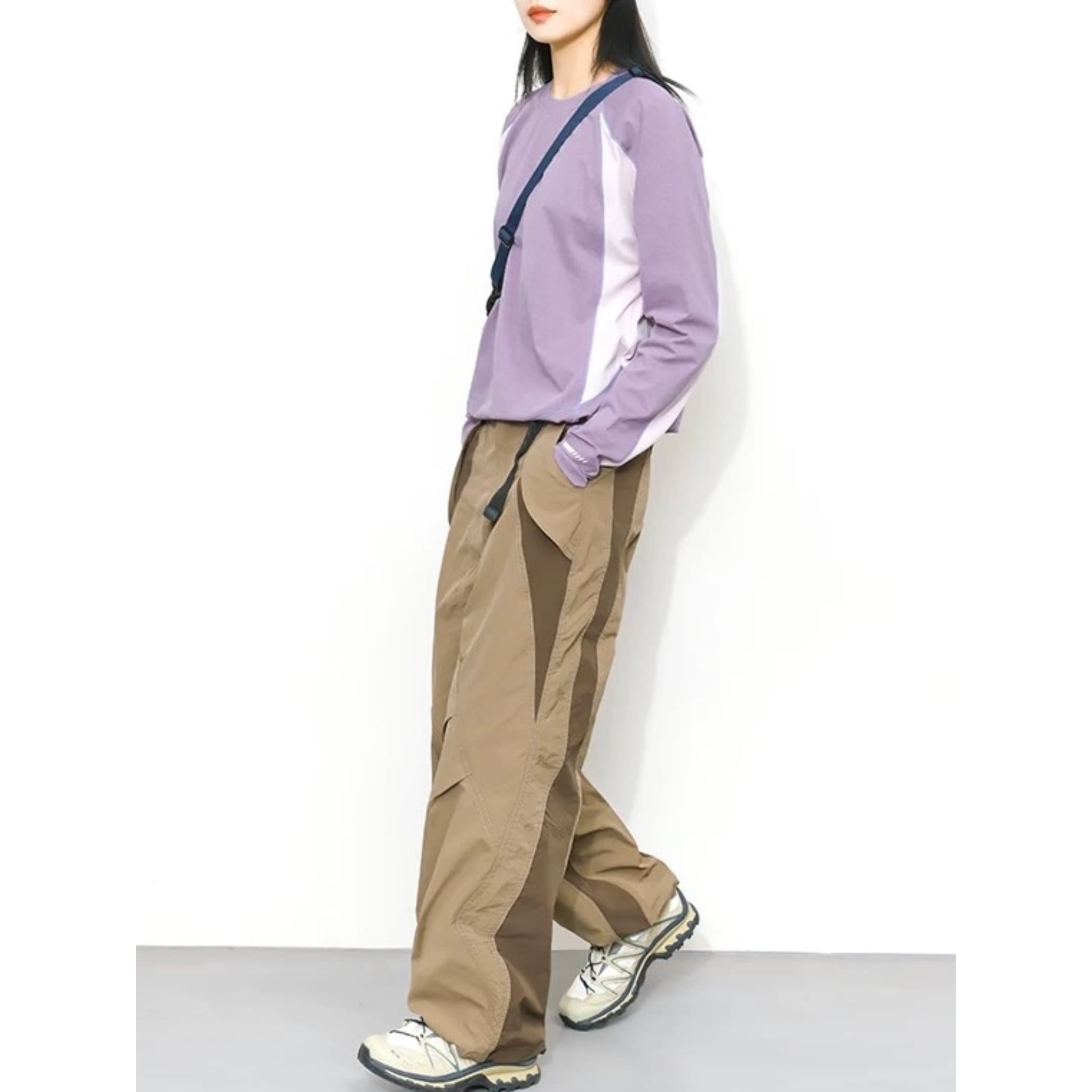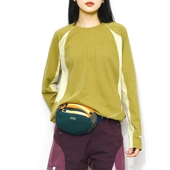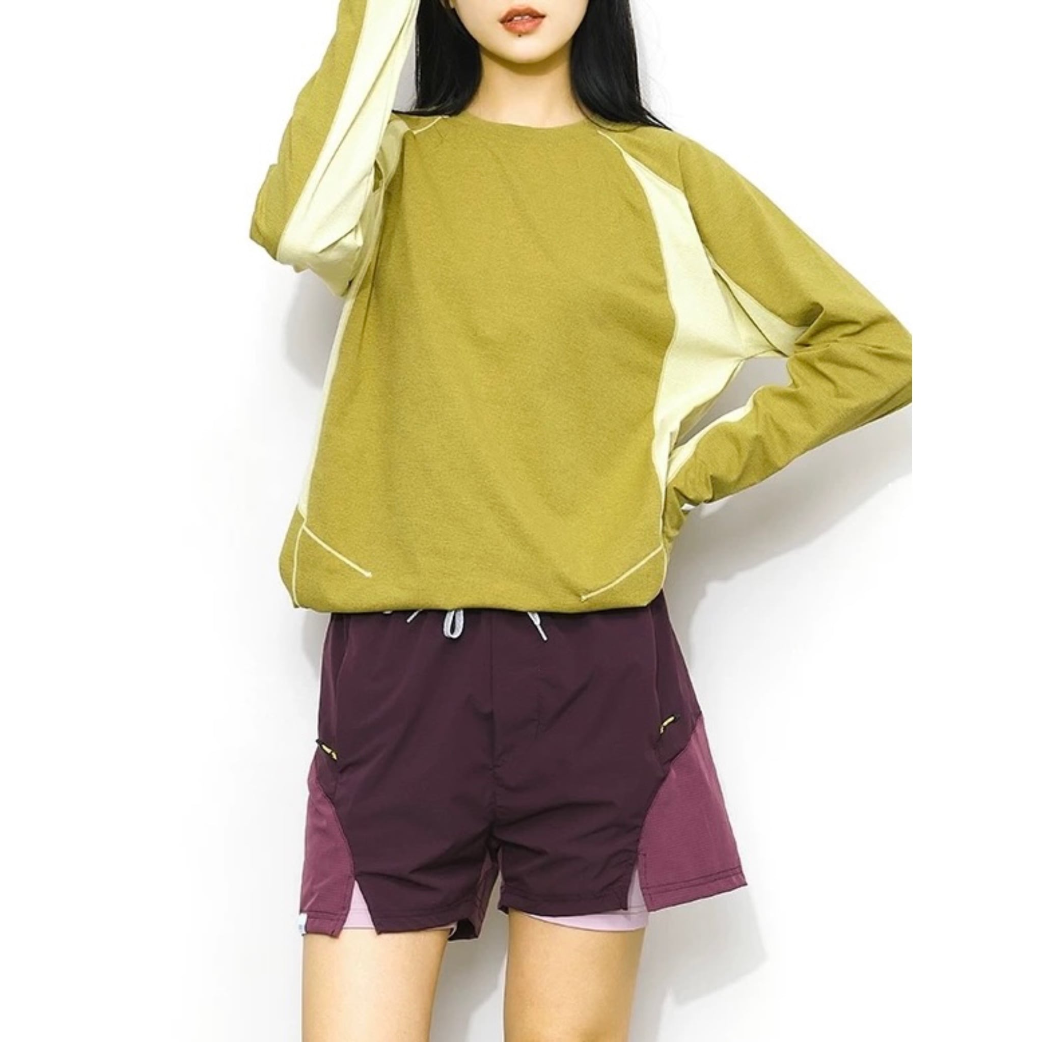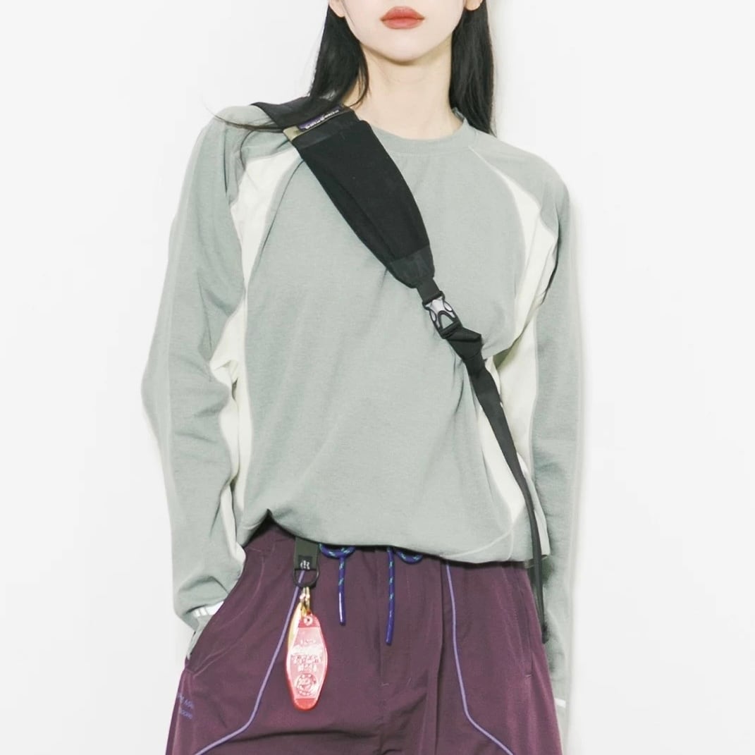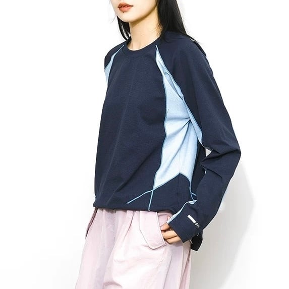 配色デザインが印象的なロングスリーブトップス。
