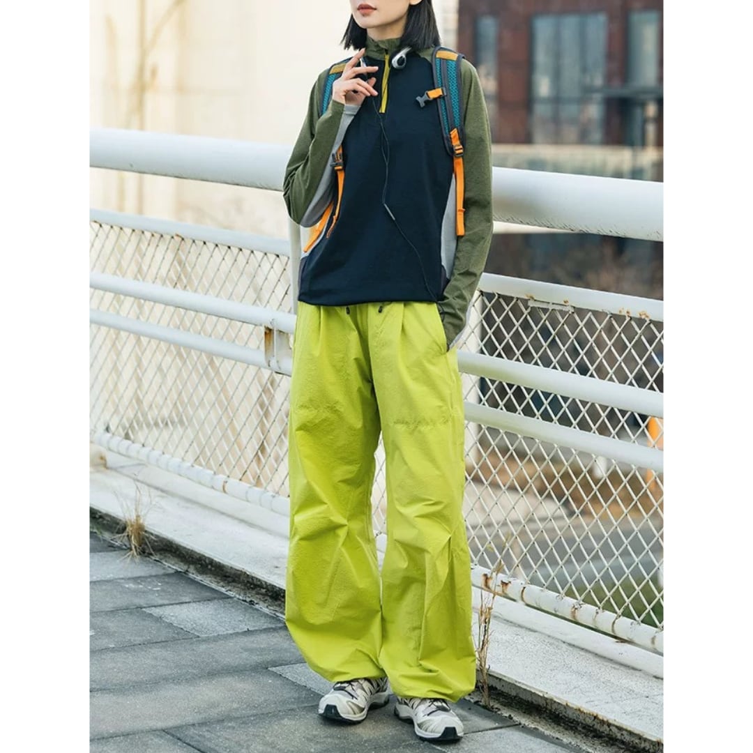 トップスに合わせて提案したい、ワイドシルエットのアクティブパンツ。