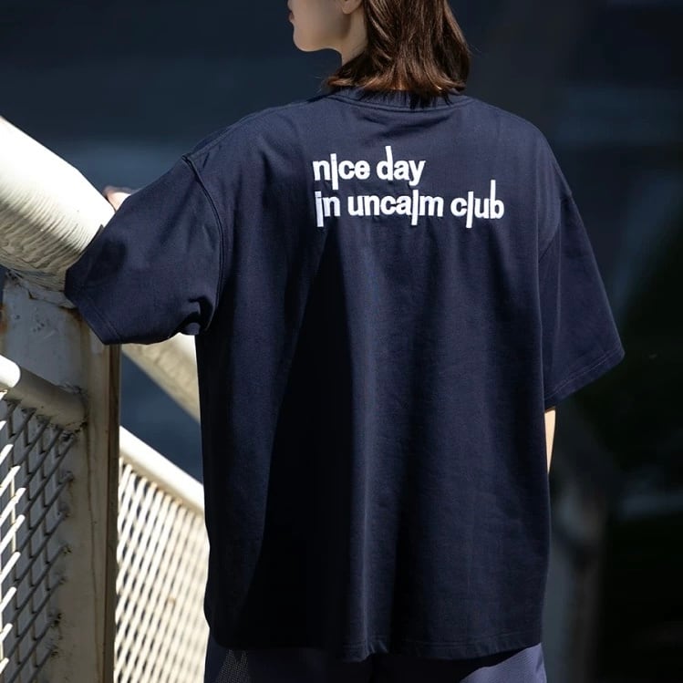 背面に施された「nice day in uncalm club」のロゴが、