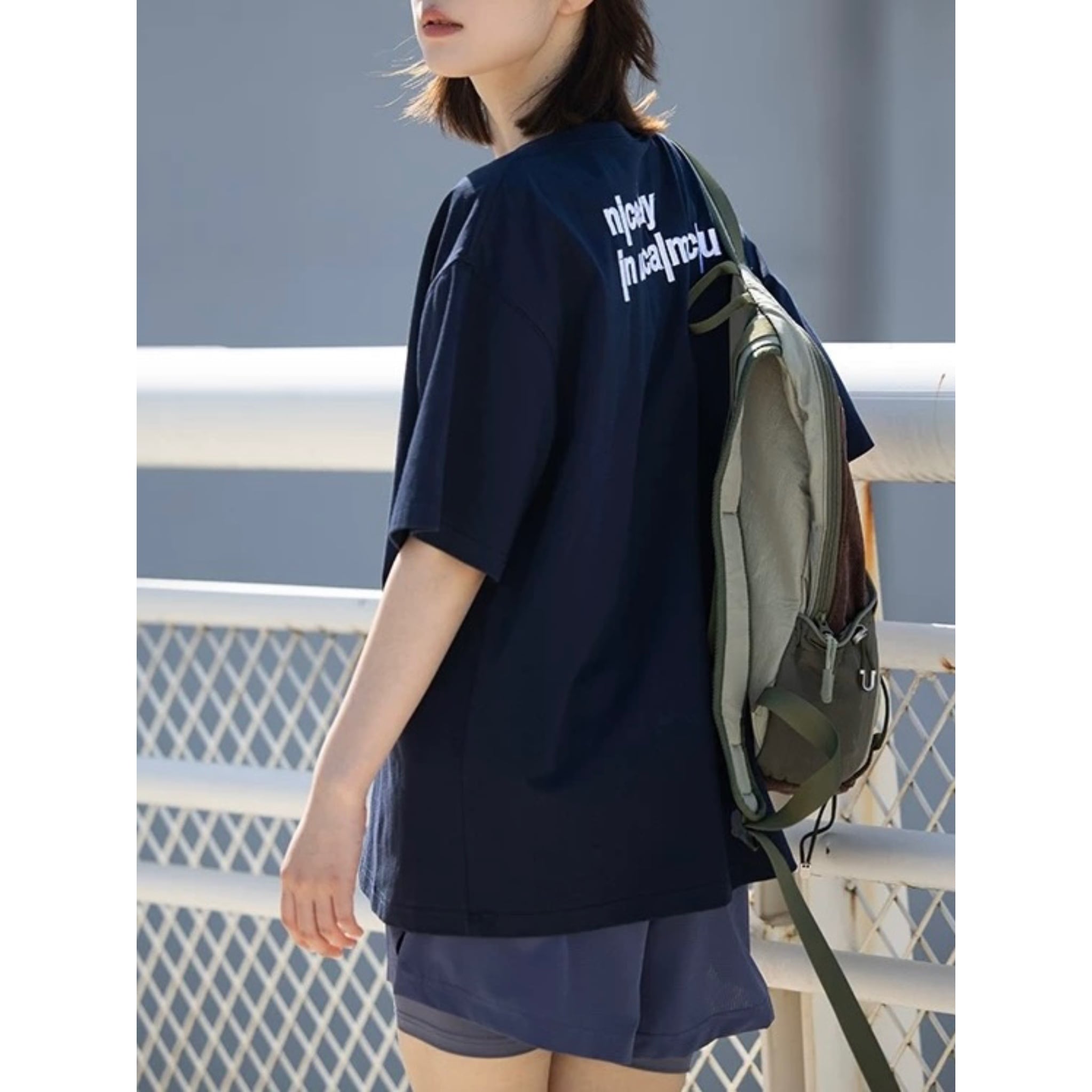 印象に残るバックロゴが主役のルーズTシャツ。