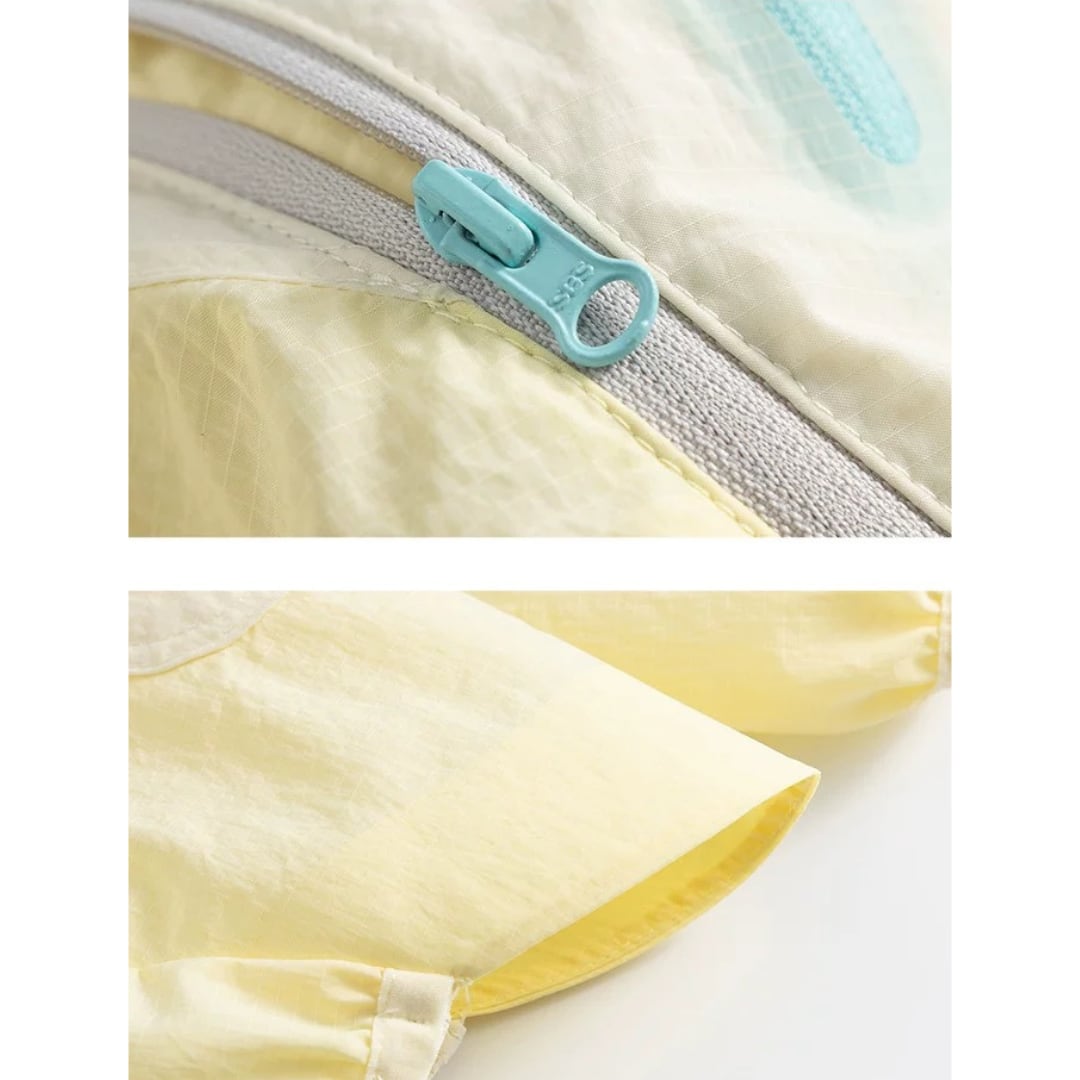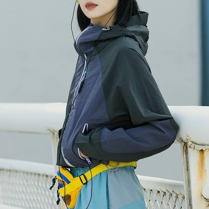 フード付きで日差し対策もしながら、ラフになりすぎない洗練されたシルエットに仕上がります。