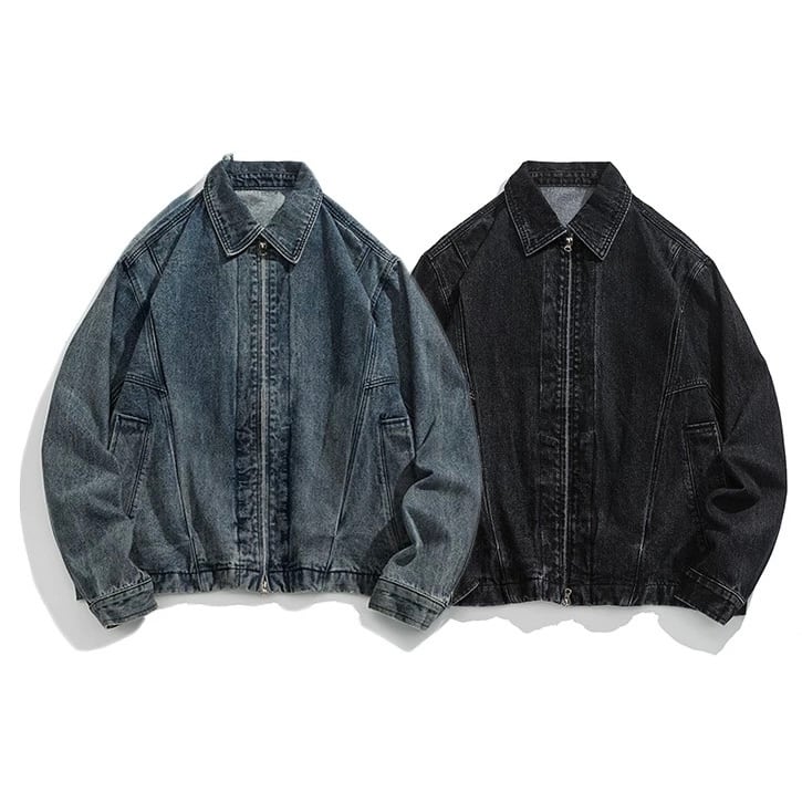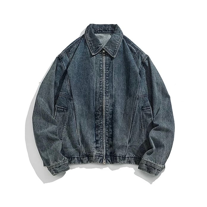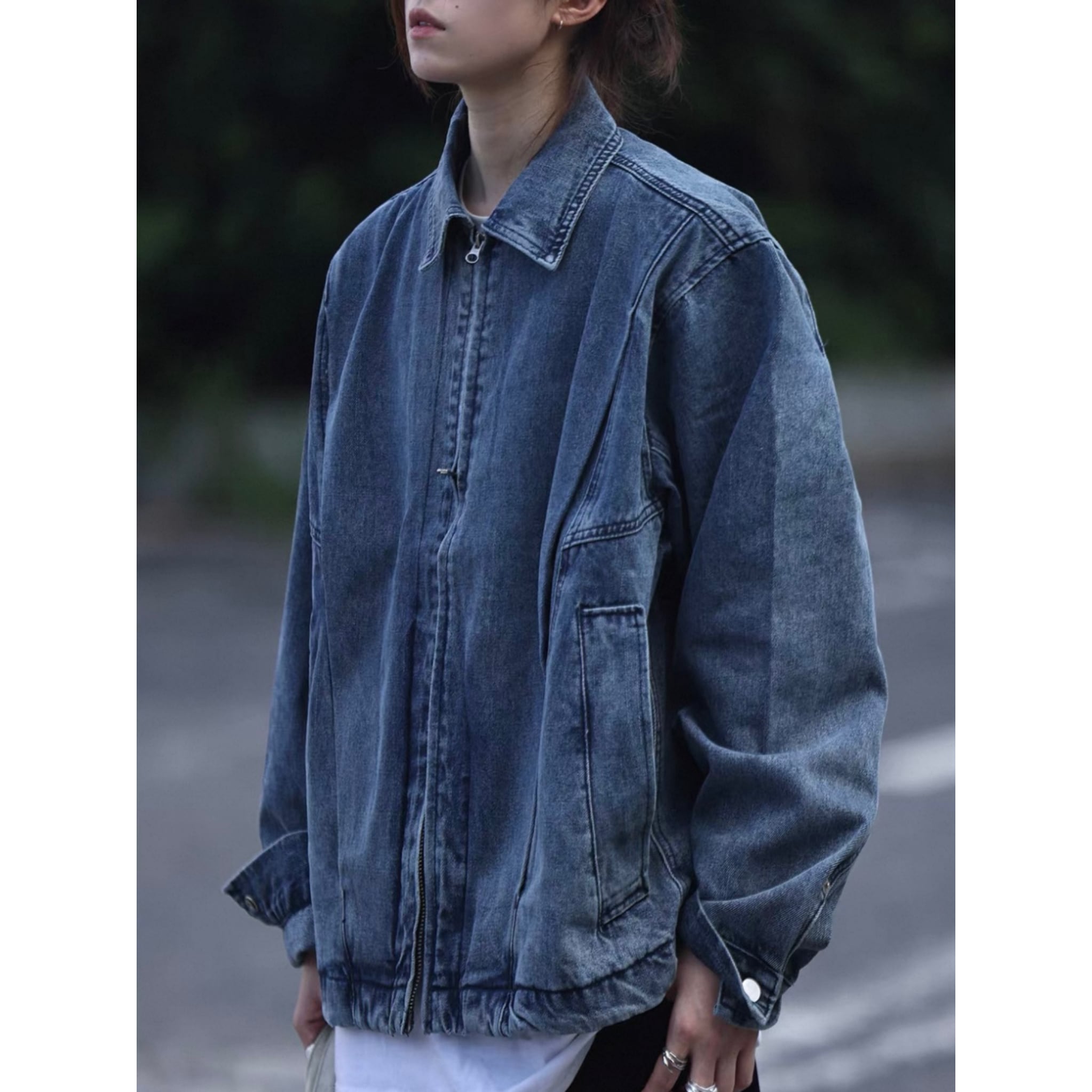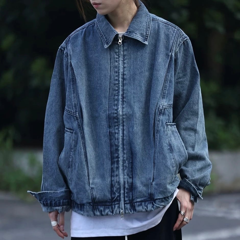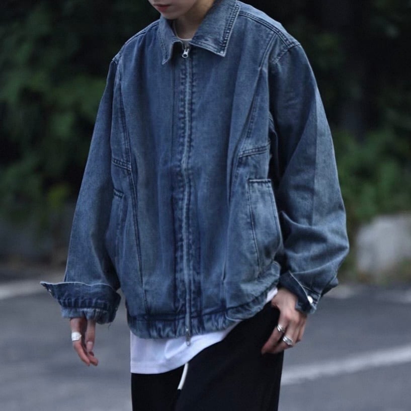 色落ち加工が映えるヴィンテージライクなデニムブルゾン。