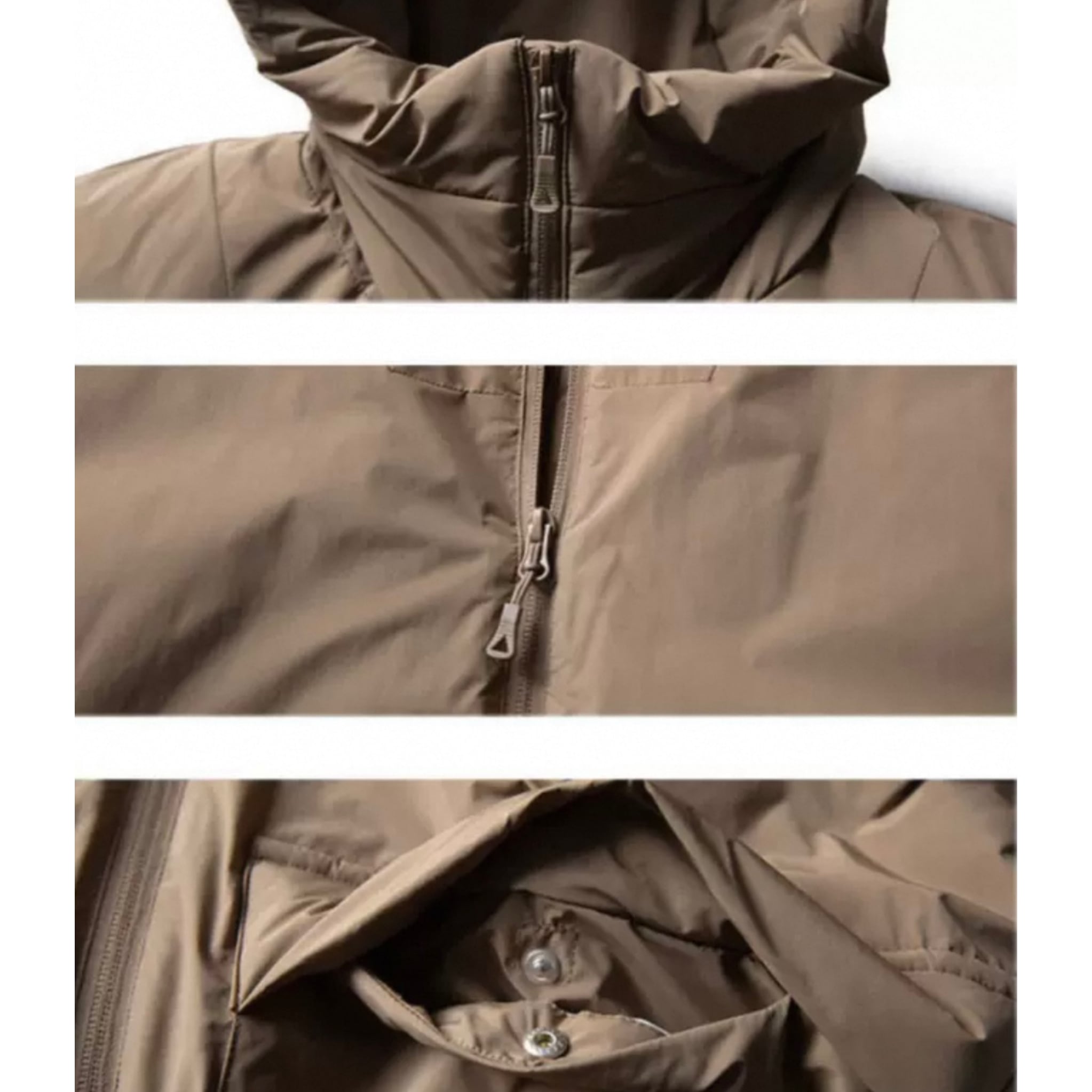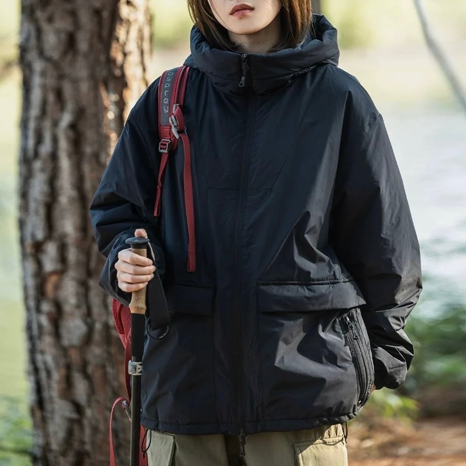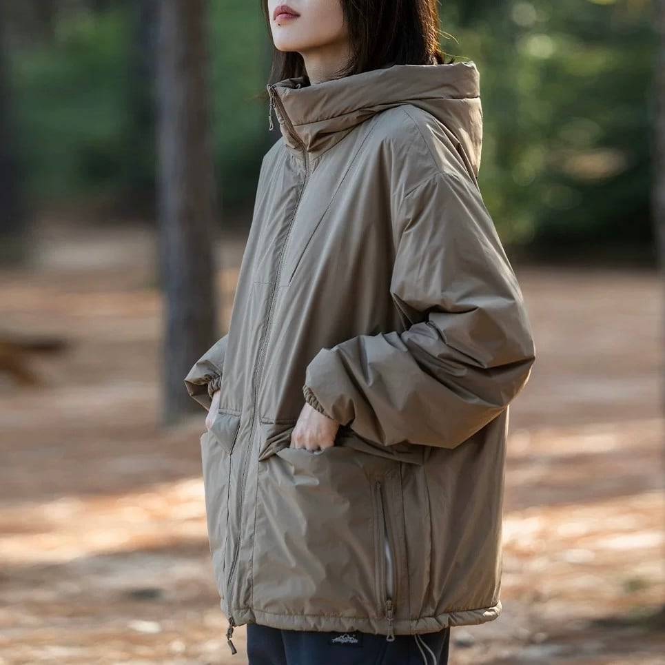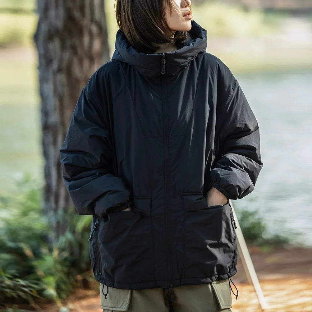 スタンドカラーとフルジップアップのデザインが、都会的な雰囲気を演出します。