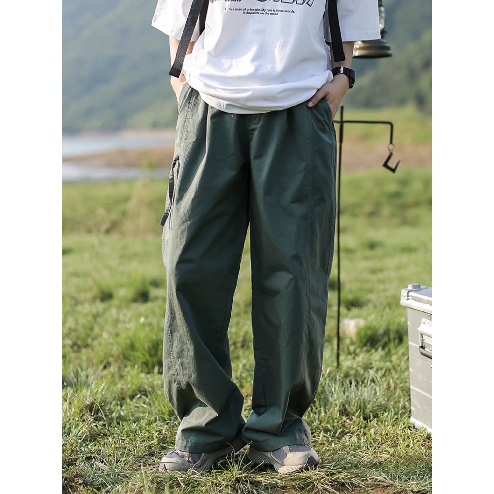 ゆったりとしたシルエットでリラックスした着心地を実現しつつ、カーゴポケットがアクセントとなり、スタイリッシュな印象を与えます。